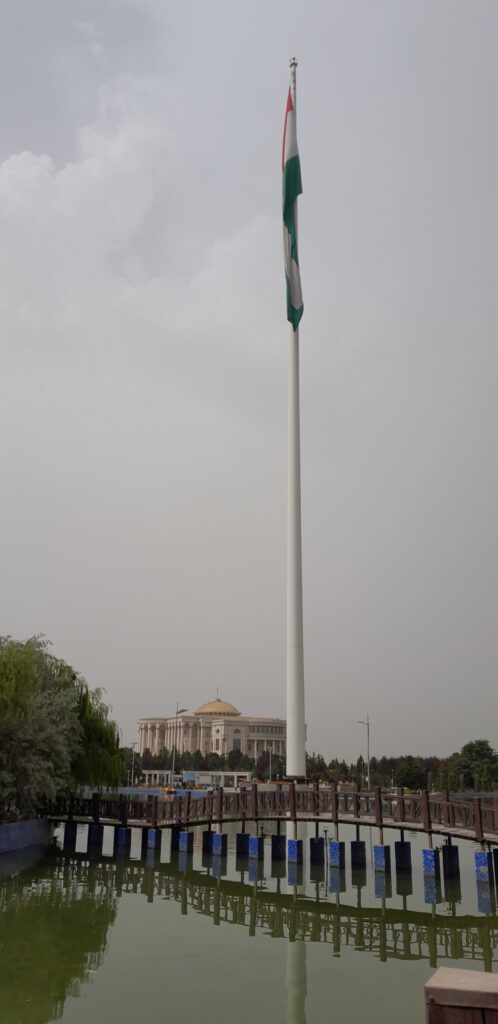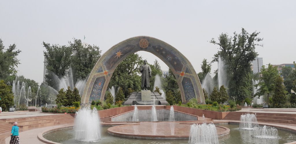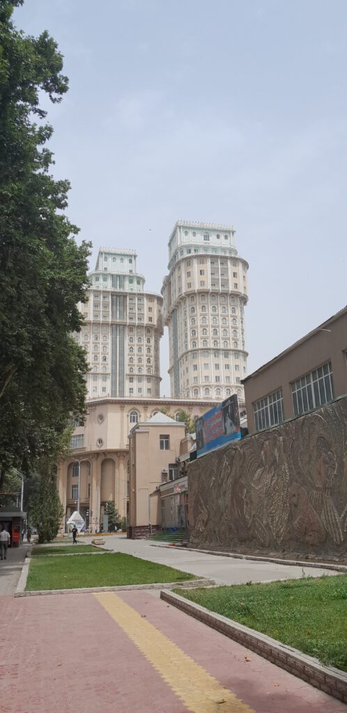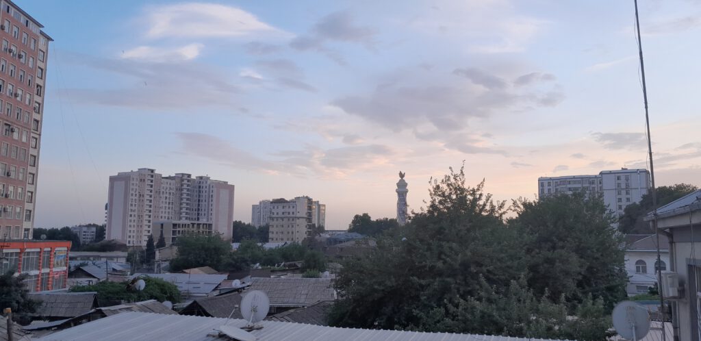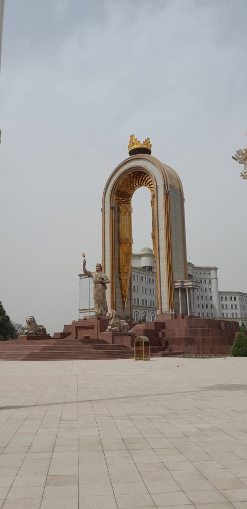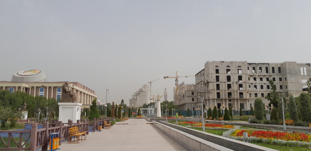 Mit Tadschikistan hatte ich nicht so Glück. Die Anreise aus Samarkand war zwar sehr einfach. Aber damit hörte es auch schon auf. Leider ist der Tourismus in dem ohnehin schon rar besuchten Land noch nicht wieder auf vorpandemie Niveau. Hinzu kommt, dass ich noch etwas vor der Hauptsaison dort war. Sowohl in Pandjakent, wo ich einen Zwischenstopp einlegte um zu den sieben Seen in den Bergen zu fahren, als auch in Dushanbe, wo die Fahrt zum Pamir Highway startet, habe ich Mitreisende gefunden. Da ich mir einiges für die sechs Monate vorgenommen hatte, hatte ich nicht so viel Zeit um zu warten. Letztendlich habe ich eine Woche in Tadschikistan verbracht. Zwei Tage Pandjakent und fünf in Dushanbe. In Pandjakent befinden sich Überreste einer antiken Stadt. Da ich von den Überresten von Afrasiob Komlex in Samarkand schon ernüchtert war, habe ich mir das dann aber gespart. Stattdessen habe ich mir den Basar angeschaut und mich an den zahlreichen Geldautomaten versucht. Die sind aber nur Zierde. Letztendlich habe ich eine Bank gefunden, die Geld auszahlen konnte. Die Fahrt nach Dushanbe war dann sehr angenehm. Die Straße ist durchgehend asphaltiert und in einem sehr guten Zustand. Sie wurde wohl von den Chinesen finanziert. Im Vergleich zu Zugreisen, ist man auf der Straße immer näher am Leben. Man fährt durch Dörfer und sieht die Verkaufsstände entlang der Straße. Auf dem ersten Abschnitt war der Blick auf die Berge auch noch sehr schön. Je näher wir Dushanbe kamen, desto diesiger wurde es allerdings. In Dushanbe angekommen, wurde dann klar, dass es sich um extremen Smog handelt wie ich ihn selbst in Dhaka/Bangladesch nicht erlebt habe. Man konnte höchstens 100m weit sehen und die Luft hat in den Atemwegen gebrannt. Nach einem kurzen Trip zum Supermarkt also erstmal im Guesthouse verkrochen. Extremer Smog in Dushanbe ist nicht ungewöhnlich, allerdings soll er überwiegend im Winter auftreten. Der aktuelle Zustand war demnach entweder ungewöhnlich oder noch harmlos im Vergleich zum Winter. Die nächsten Tage verbesserte sich die Luftqualität aber etwas. Dushanbe hat ganz interessante Ecken mit spannender Architektur und schönen Parks. Zudem gibt es ein überraschend gutes Angebot an italienischen Restaurants 😉