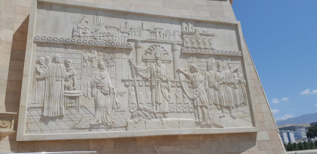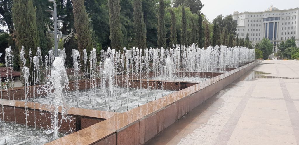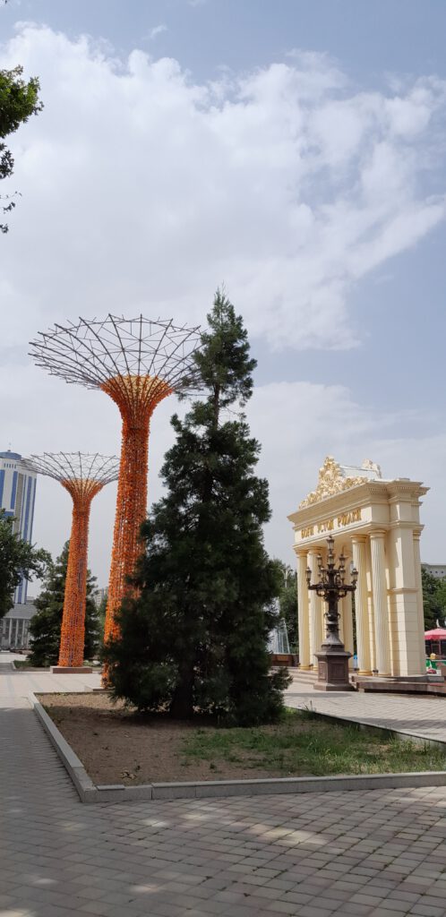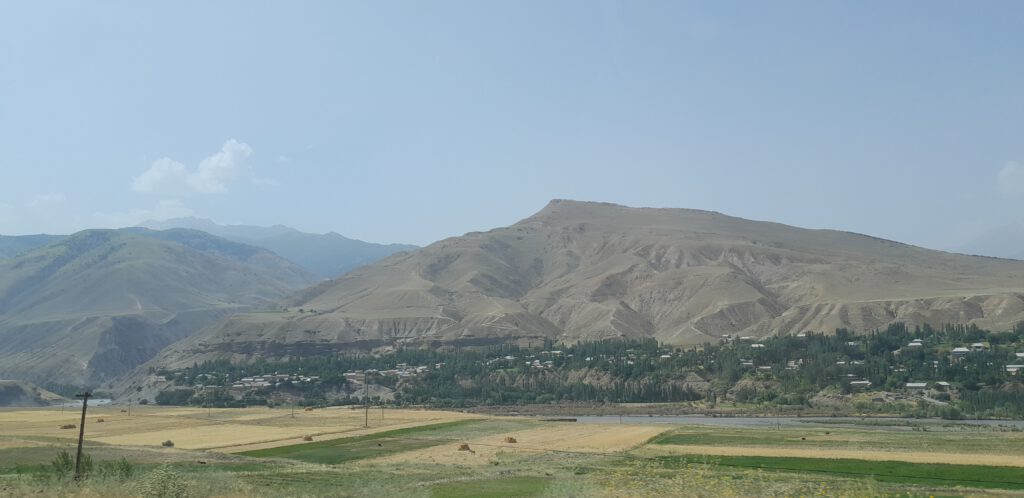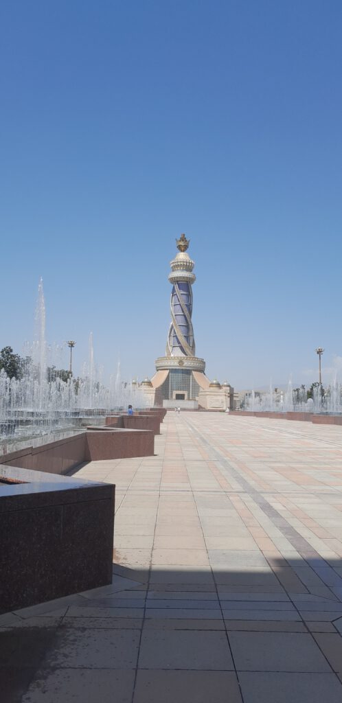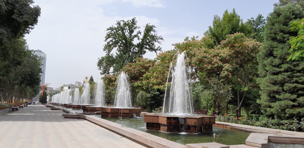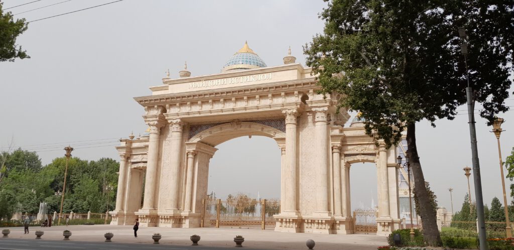 Mit Tadschikistan hatte ich nicht so Glück. Die Anreise aus Samarkand war zwar sehr einfach. Aber damit hörte es auch schon auf. Leider ist der Tourismus in dem ohnehin schon rar besuchten Land noch nicht wieder auf vorpandemie Niveau. Hinzu kommt, dass ich noch etwas vor der Hauptsaison dort war. Sowohl in Pandjakent, wo ich einen Zwischenstopp einlegte um zu den sieben Seen in den Bergen zu fahren, als auch in Dushanbe, wo die Fahrt zum Pamir Highway startet, habe ich Mitreisende gefunden. Da ich mir einiges für die sechs Monate vorgenommen hatte, hatte ich nicht so viel Zeit um zu warten. Letztendlich habe ich eine Woche in Tadschikistan verbracht. Zwei Tage Pandjakent und fünf in Dushanbe. In Pandjakent befinden sich Überreste einer antiken Stadt. Da ich von den Überresten von Afrasiob Komlex in Samarkand schon ernüchtert war, habe ich mir das dann aber gespart. Stattdessen habe ich mir den Basar angeschaut und mich an den zahlreichen Geldautomaten versucht. Die sind aber nur Zierde. Letztendlich habe ich eine Bank gefunden, die Geld auszahlen konnte. Die Fahrt nach Dushanbe war dann sehr angenehm. Die Straße ist durchgehend asphaltiert und in einem sehr guten Zustand. Sie wurde wohl von den Chinesen finanziert. Im Vergleich zu Zugreisen, ist man auf der Straße immer näher am Leben. Man fährt durch Dörfer und sieht die Verkaufsstände entlang der Straße. Auf dem ersten Abschnitt war der Blick auf die Berge auch noch sehr schön. Je näher wir Dushanbe kamen, desto diesiger wurde es allerdings. In Dushanbe angekommen, wurde dann klar, dass es sich um extremen Smog handelt wie ich ihn selbst in Dhaka/Bangladesch nicht erlebt habe. Man konnte höchstens 100m weit sehen und die Luft hat in den Atemwegen gebrannt. Nach einem kurzen Trip zum Supermarkt also erstmal im Guesthouse verkrochen. Extremer Smog in Dushanbe ist nicht ungewöhnlich, allerdings soll er überwiegend im Winter auftreten. Der aktuelle Zustand war demnach entweder ungewöhnlich oder noch harmlos im Vergleich zum Winter. Die nächsten Tage verbesserte sich die Luftqualität aber etwas. Dushanbe hat ganz interessante Ecken mit spannender Architektur und schönen Parks. Zudem gibt es ein überraschend gutes Angebot an italienischen Restaurants 😉
